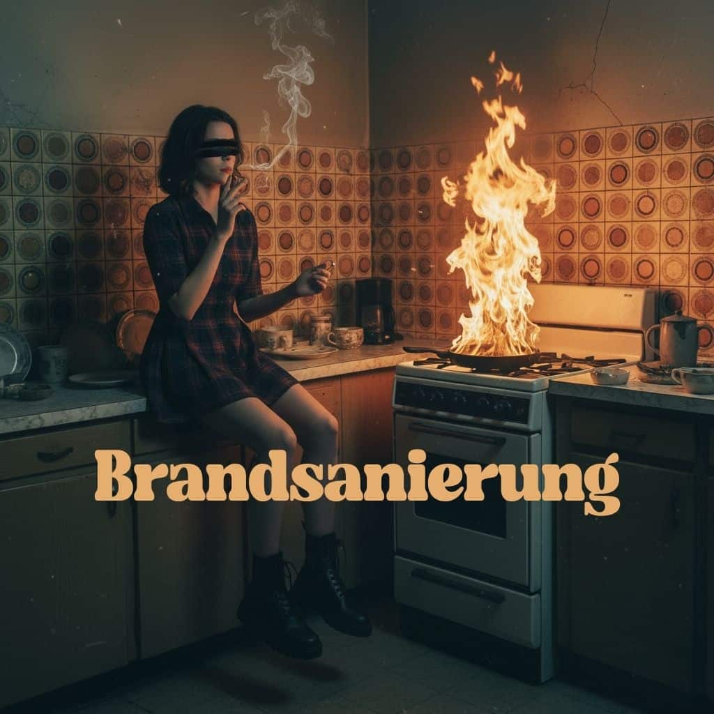 Symbolbild Brandsanierung: Großes Feuer auf einem Küchenherd. Ihr Spezialist für Brand- und Rußschaden Sanierung in Wien.