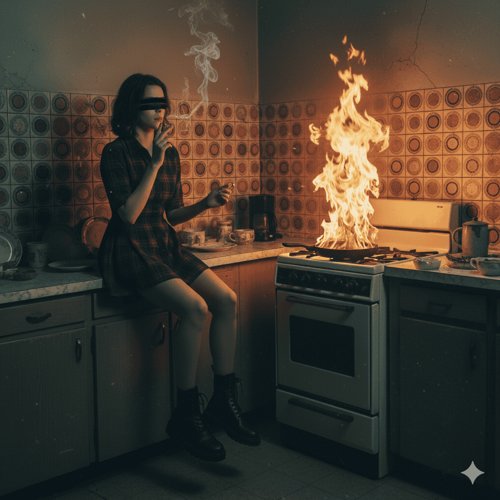 Symbolbild Brandsanierung: Großes Feuer auf einem Küchenherd. Ihr Spezialist für Brand- und Rußschaden Sanierung in Wien.